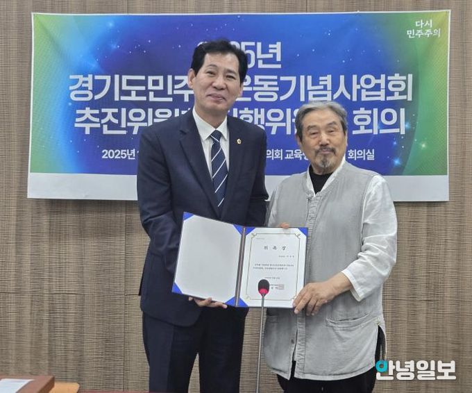 안녕일보 배윤 기자 | 경기도의회 안전행정위원회 이영봉 의원(더불어민주당, 의정부2)이 10월 16일 경기도의회 교육행정위원회 회의실에서 열린 '2025년 경기도 민주화운동 기념사업 추진현황 보고회'에서 경기도 민주화운동 기념사업 자문위원으로 위촉됐다. 이 의원은 이 자리에서 “민주주의의 본질을 도민과 함께 되새기고, 그 가치를 실질적으로 확산시킬 수 있는 정책적 뒷받침이 필요하다”고 강조했다.