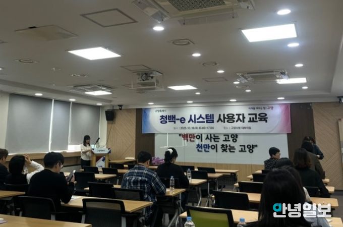 안녕일보 배윤 기자 | 고양특례시는 지난 16일 대회의실에서 직원을 대상으로‘청백-e 시스템 사용자 교육’을 실시했다고 밝혔다.