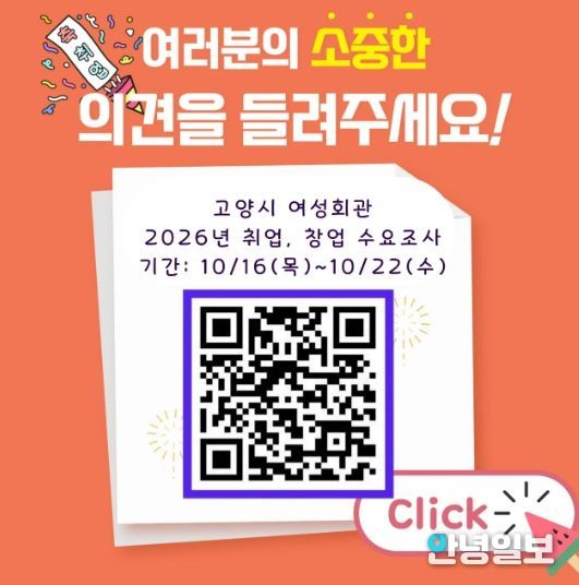 이번 조사는 고양시민을 대상으로 22일 오후 5시까지 진행되며, 온라인 설문을 통해 참여할 수 있다. 설문은 QR코드를 통해 접속 가능하며, 취업과 창업 분야에 대한 실질적인 수요를 파악하는 데 중점을 둔다.