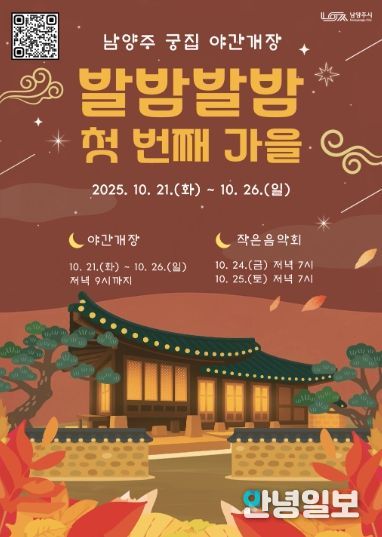 시 관계자는 “남양주 궁집은 고즈넉한 전통 건축미와 정취를 간직한 공간으로 이번 행사를 통해 관람객이 특별한 가을밤의 감성을 느낄 수 있을 것이라 기대한다”며 “앞으로도 남양주 궁집이 도심 속의 힐링 명소로 활용될 수 있도록 다양한 프로그램을 진행하겠다”고 말했다.