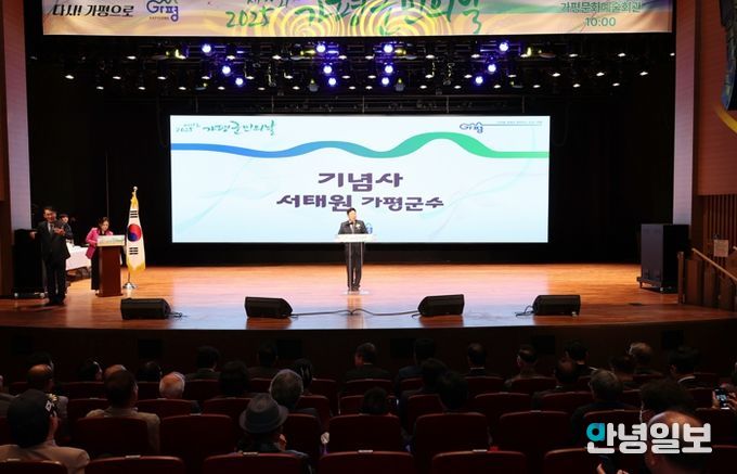 안녕일보 배윤 기자 | 가평군은 17일 가평문화예술회관에서 ‘제58회 가평군민의 날 기념식’을 성황리에 개최했다고 밝혔다. 이날 행사에는 서태원 가평군수를 비롯해 김동연 경기도지사, 김용태 국회의원, 김경수 군의회 의장과 의원, 지역 기관 및 사회단체장, 군민 등 600여 명이 참석해 군민의 날을 축하했다.