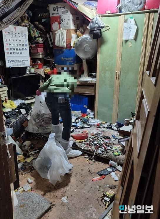 대상자는 폐결핵 및 폐렴을 앓고 있는 고위험 건강 취약계층으로 장기간 병원치료를 받은 후 퇴원했다. 주거지에 출입이 어려울 정도로 쓰레기가 쌓여 있고, 악취와 해충으로 위생 및 건강상의 문제가 매우 심각한 상황이었다.