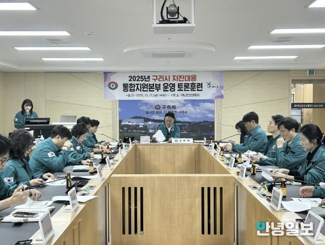 안녕일보 배윤 기자 | 구리시는 지난 10월 17일 구리시청 재난 안전상황실에서 지진으로 인한 대규모 인명 및 재산 피해 발생을 가정한 '2025년 지진 재난 대응 통합지원본부 운영 토론훈련'을 실시했다고 밝혔다.