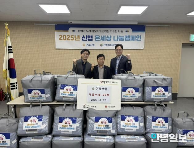 구리신협 지유봉 지사장은“다가오는 겨울을 앞두고 이웃들이 조금이나마 따뜻하게 지낼 수 있길 바라는 마음으로 후원에 참여했다”라며 “앞으로도 지역사회와 함께 나눔을 실천하는 신협이 되겠다”라고 말했다.