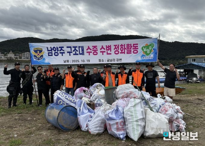 안녕일보 배윤 기자 | 남양주시는 19일 금남리 어촌계 선착장 일원에서 사단법인 한국해양구조협회 남양주구조대 주관으로 ‘수중·수변 정화활동’을 진행했다고 밝혔다.