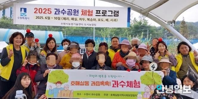 안녕일보 배윤 기자 | 수원시 권선구 호매실동 지역사회보장협의체는 지난 20일, 저소득 홀몸 어르신들을 모시고 과수 체험(사과 따기)에 나섰다. 이번 행사는 관내 홀몸 어르신들의 우울감 등을 예방하고 사회적 관계망을 만들기 위해 진행됐다.