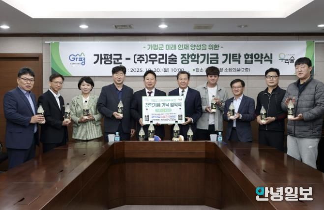 안녕일보 배윤 기자 | 가평군은 ㈜우리술과 지역 인재양성을 위한 장학기금 기탁 재협약을 20일 체결했다고 밝혔다.