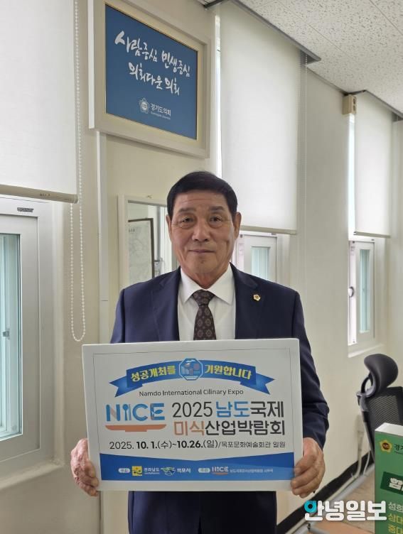 안녕일보 배윤 기자 | 경기도의회 김규창 부의장(국민의힘, 여주2)이 '2025 남도국제미식산업 박람회'의 성공적인 개최를 기원하는 릴레이 응원 챌린지에 동참했다.