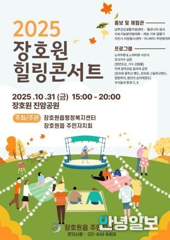 안녕일보 배윤 기자 | 이천시 장호원읍 주민자치회는 오는 10월 31일 오후 3시 진암공원에서 제2회 장호원 힐링콘서트를 개최한다고 21일 밝혔다.