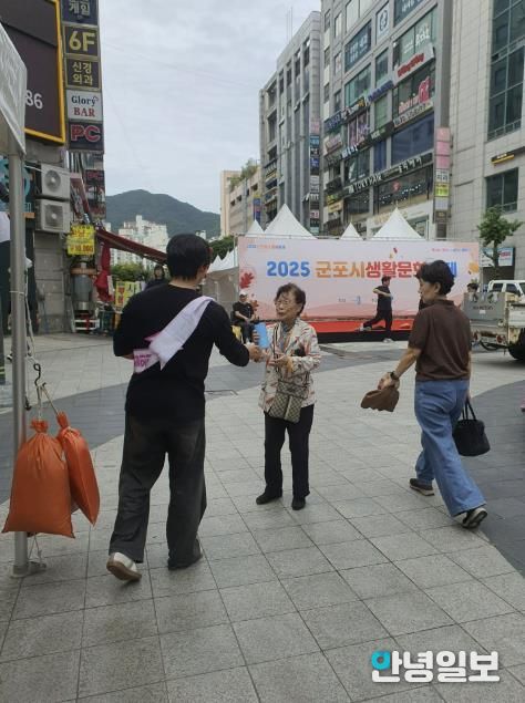 안녕일보 배윤 기자 | 군포시는 10월 17일 산본로데오거리에서 열린 ‘2025 군포올래행복축제’ 현장에서 시민들을 대상으로 도로명주소 홍보활동을 진행했다.