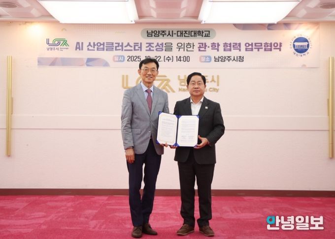 안녕일보 배윤 기자 | 남양주시는 22일 시청에서 대진대학교와 ‘AI 산업클러스터 조성을 위한 관·학 협력 업무협약’을 체결했다고 밝혔다.