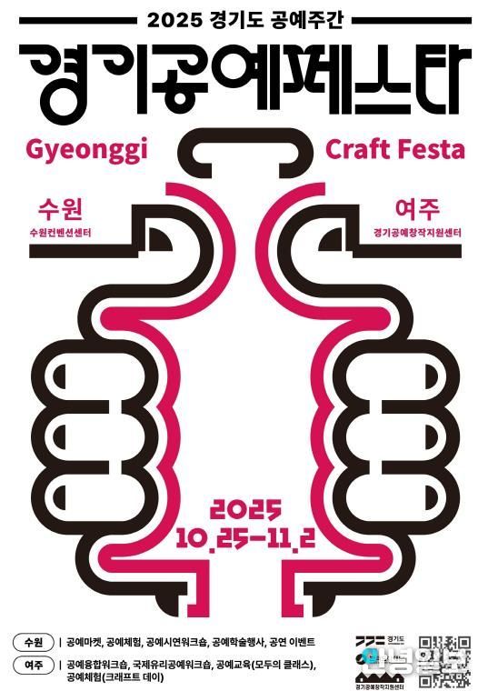 안녕일보 배윤 기자 | 한국도자재단이 10월 25일부터 11월 2일까지 수원컨벤션센터(수원)와 경기공예창작지원센터(여주)에서 ‘2025 경기도 공예주간’의 대표 행사인 ‘경기공예페스타’를 개최한다.