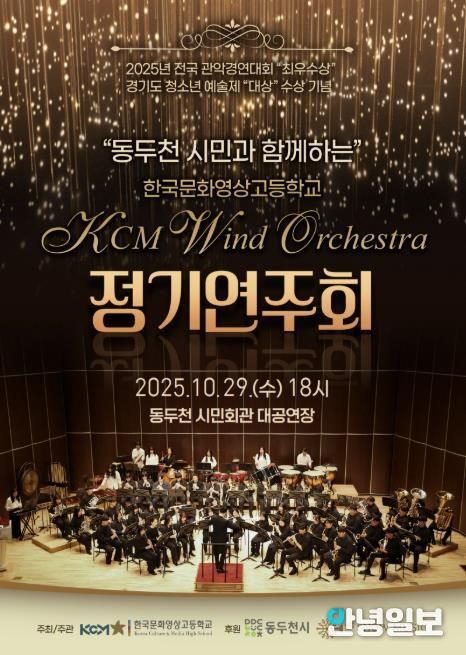 안녕일보 배윤 기자 | 동두천시가 지원하는 초·중·고 연계 오케스트라 사업을 통해 꾸준한 성과를 내고 있는 한국문화영상고 KCM 윈드 오케스트라가 오는 10월 29일 오후 6시, 동두천 시민회관 공연장에서 제5회 정기연주회를 개최한다.