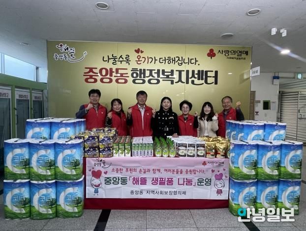 ‘해뜰 생필품 나눔’은 지역사회 후원금으로 마련한 다양한 생필품과 식료품을 꾸러미로 제작해 저소득층과 소외계층에게 전달하는 나눔 사업으로, 중앙동의 대표적인 지역복지 활동 중 하나다.