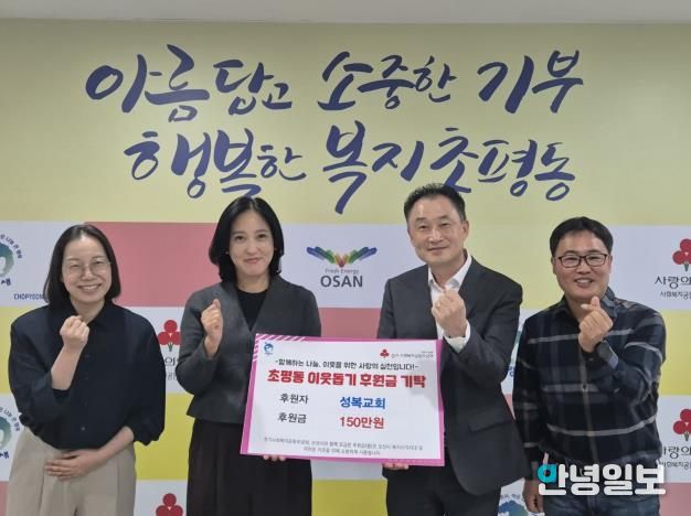 이기영 초평동장은 “어려운 이웃을 위해 꾸준히 나눔을 실천해 주시는 오산성복교회에 깊이 감사드린다”며 “기탁된 성금은 도움이 필요한 주민들에게 소중히 전달해 희망과 용기가 될 수 있도록 하겠다”고 말했다.