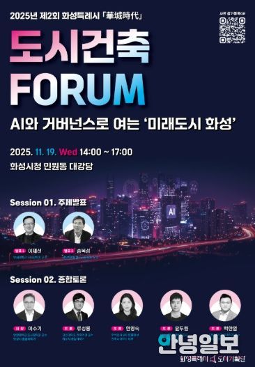 안녕일보 배윤 기자 | 화성특례시는 오는 11월 19일 화성시청 대강당에서 ‘2025년 제2회 화성특례시 도시건축포럼 – 華城時代(화성시대)’를 개최한다고 밝혔다.