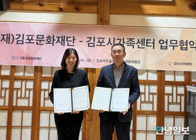 안녕일보 배윤 기자 | (재)김포문화재단과 김포시가족센터는 10월 24일 김포아트빌리지 한옥마을 전통문화체험관에서 관내 가족문화 확산을 위한 업무협약을 체결했다.