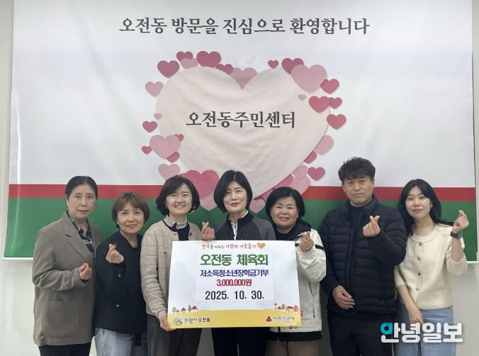 안녕일보 배윤 기자 | 의왕시 오전동체육회는 10월 30일‘2025년 사랑나눔 일일주막’운영을 통해 마련한 수익금 전액을 취약계층 청소년을 위한 장학금으로 기부했다.