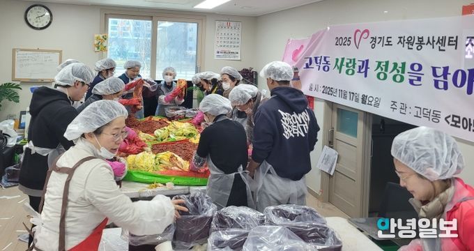이번 행사는 ‘모아모아행복방’에서 경기도 자원봉사센터에서 실시한 '2025년 도민이 전하는 자원봉사 2차 지원사업'에 선정되어 보조금 600만 원을 지원받아 추진했으며, 모아모아행복방 소속 회원들과 자원봉사자 등 20명이 참여했다. 이틀간 정성스럽게 담근 김장김치는 고덕동 관내 취약계층 170가구에 전달됐다.