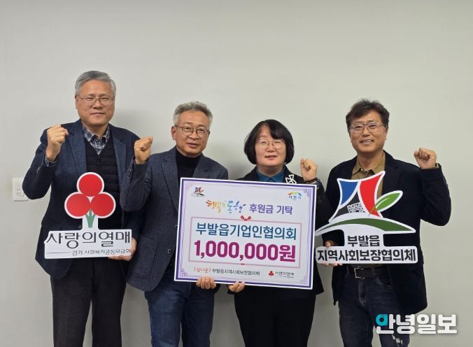 안녕일보 배윤 기자 | 부발읍 기업인협의회가 연말을 맞이하여 지역사회 나눔을 실천하기 위해 부발읍 행정복지센터에 후원금 100만 원을 기탁했다.