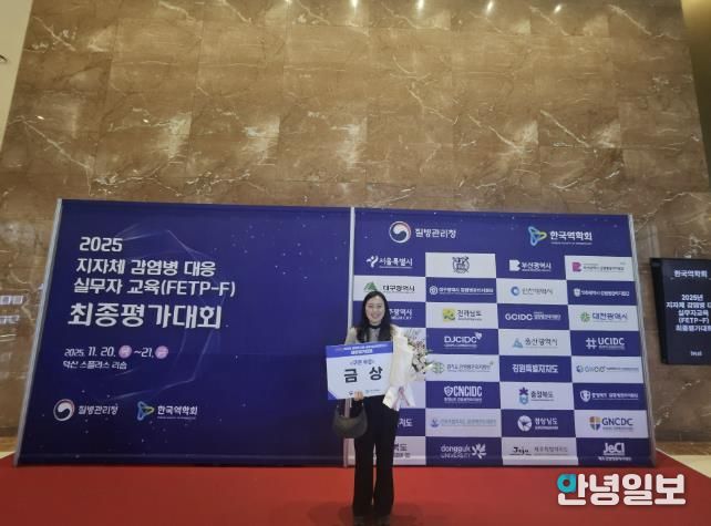 20~21일 스플라스 리솜(예산군)에서 열린 2025년 FETP-F(감염병 대응 실무자교육) 담당자 과정 최종 평가대회에서는 요양원 CRE 집단 발생의 위험 요인을 분석하고, 이에 대한 보건소 예방·관리 중재 활동을 설계·시행한 사례를 공유해 금상을 받았다.