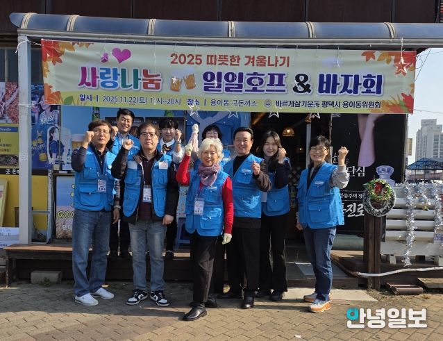 안녕일보 배윤 기자 | 바르게살기운동 평택시 용이동위원회는 지난 22일 지역사회 나눔 활동의 하나로 ‘사랑 나눔 일일호프&바자회’를 개최했다.