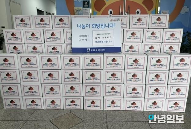 안녕일보 배윤 기자 | 수원시 장안구 파장동은 지난 25일, ㈜더죤환경기술의 후원으로 마련된 기금을 통해 김치 완제품을 지역 내 80세대에 전달했다.