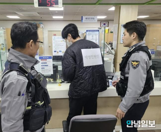 이날 △특이민원 발생 및 진정 유도 △녹음·녹화 △112상황실 신고 △피해 공무원 보호 및 방문 민원인 대피 △민원인 경찰 인계 순으로 진행됐다.