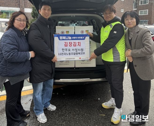안녕일보 배윤 기자 | LG전자노동조합평택지부는 지난 27일 평택시 송북동에 거주하는 미혼모 및 한부모 30가구에 김장김치를 전달하며 겨울철 식탁에 온기를 더했다.