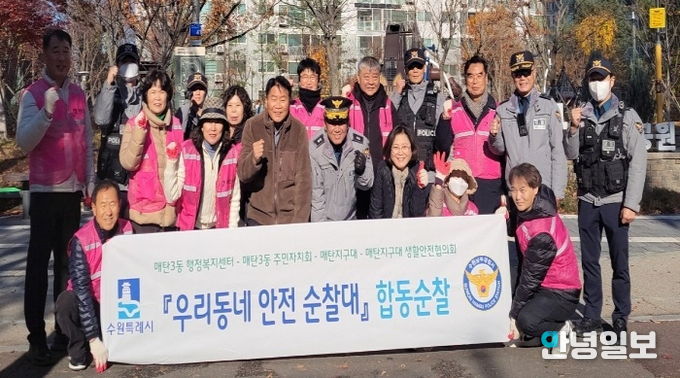 안녕일보 배윤 기자 | 수원시 영통구 매탄3동은 지난 11월 28일 매탄지구대, 매탄3동 주민자치회와 ‘우리 동네 안전순찰대’ 4분기 합동순찰을 실시했다.