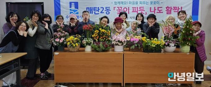 안녕일보 배윤 기자 | 지난 1일, 매탄2동 지역사회보장협의체는 특화사업 중 하나인 ‘꽃이 피듯, 나도 활짝!’꽃꽂이 교실을 마무리하며 어르신들의 작품으로 ‘우리들의 작은전시회’를 매탄2동 행정복지센터 민원실에 개최했으며, 4일까지 전시한다.