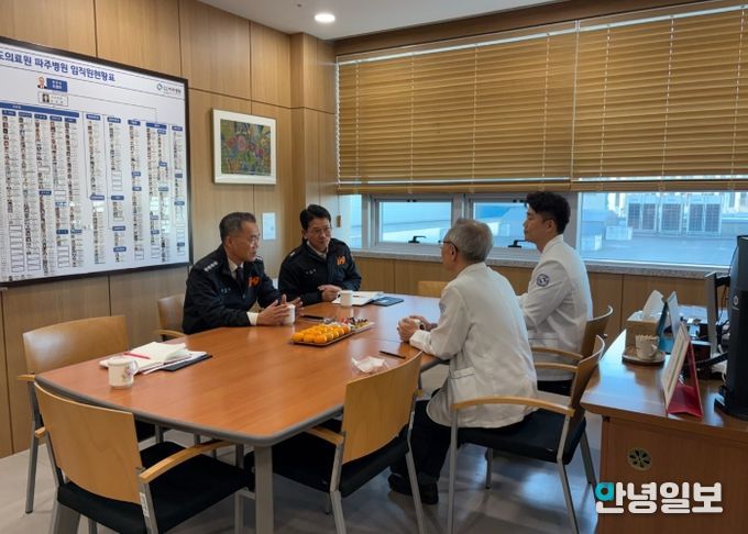 안녕일보 배윤 기자 | 파주소방서는 지난 8일 경기도의료원 파주병원을 방문해 중증 응급환자의 신속하고 안전한 이송체계 구축을 위한 협력 방안을 논의했다.
