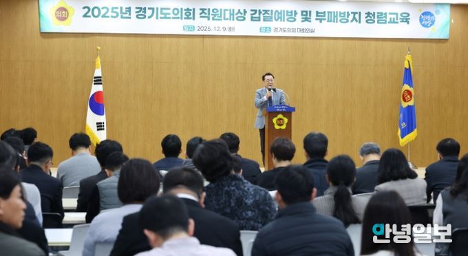 안녕일보 배윤 기자 | 경기도의회는 9일 오전 의회 대회의실에서 전 직원을 대상으로 ‘갑질예방 및 부패방지 청렴교육’을 실시했다.