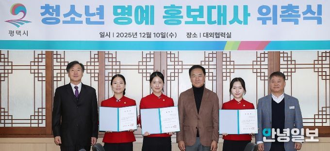 안녕일보 배윤 기자 | 평택시는 10일, 시청 대외협력실에서 외국어 능력이 우수한 한국관광고등학교 학생 3명을 평택시 ‘청소년 명예 홍보대사’로 위촉했다고 밝혔다.