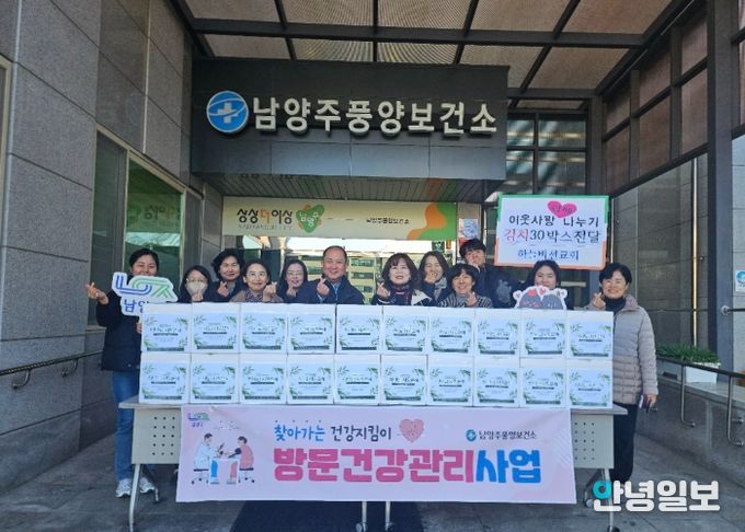 안녕일보 배윤 기자 | 남양주시는 8일 남양주풍양보건소가 오남읍 하늘비전교회에서 기부한 김장 김치 30박스를 방문건강관리사업 대상자 30가구에 전달하며 따뜻한 나눔을 실천했다고 11일 밝혔다.