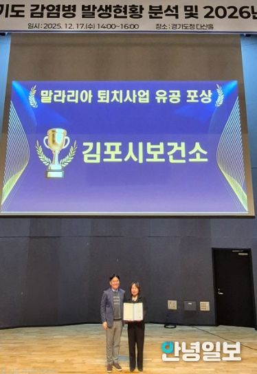 안녕일보 배윤 기자 | 김포시보건소는 경기도가 실시한 ‘2025년 말라리아 퇴치사업 유공 평가’에서 우수기관으로 선정되며 8년 연속 수상하는 성과를 이어갔다.