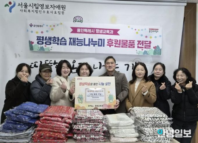 안녕일보 배윤 기자 | 용인특례시는 18일 평생학습관·기흥평생학습관 ‘평생학습 재능나누미’ 수강생들이 처인구 이동읍에 있는 서울시립영보자애원에 직접 만든 턱받이, 무릎담요 등을 기탁했다고 19일 밝혔다.