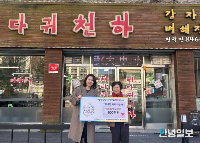 안녕일보 배윤 기자 | 남양주시는 지난 18일 별내면 소재 ‘뼈다귀천하’가 지역 내 취약계층 지원을 위해 후원금 100만 원을 별내면 지역사회보장협의체에 기탁했다고 밝혔다.