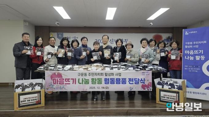 안녕일보 배윤 기자 | 지난 19일, 권선구 구운동 주민자치회가 주민자치회 활성화 사업 일환으로 추진한 ‘마음 뜨기 나눔 활동’을 통해 만든 목도리 400여 개를 구운동 행정복지센터에 전달했다.