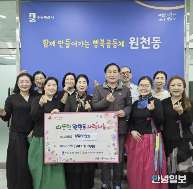 원천동 주민자치센터 한국무용반은 매년 연말마다 성금 기탁을 이어오며 지속적인 나눔을 실천하고 있다. 이들의 꾸준한 나눔 활동은 지역사회에 귀감이 되며 저소득 주민들에게 큰 힘이 되고 있다.