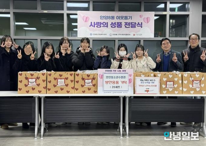 안녕일보 배윤 기자 | 안양시 만안구 안양8동 행정복지센터에 따르면 지난 18일 만안청소년수련관의 청소년 자치활동 프로그램 ‘재능기획단’이 관내 혼자 생활하는 어르신들에게 전달해달라며 센터에 1,094,000원 상당의 방한용품 20세트를 기탁했다고 23일 밝혔다.