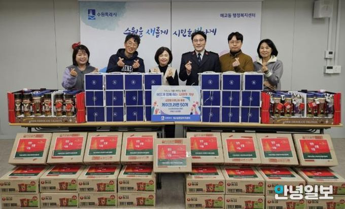 이지효 매교동장은 “성탄절을 맞이하여 후원해주신 구세군수원영문 담임사관님 및 관계자분들에게 진심으로 감사드리며, 연말에 소외되고 어려움을 겪는 주민들이 없는지 잘 살피겠다”라고 말했다.