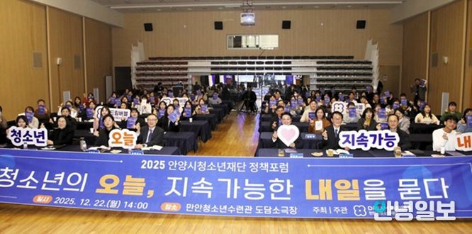 안녕일보 배윤 기자 | 안양시청소년재단은 지난 22일 만안청소년수련관 도담소극장에서 120명이 참석한 가운데 ‘청소년의 오늘, 지속가능한 내일을 묻다’를 주제로 2025년 안양시청소년재단 정책포럼을 개최했다고 23일 밝혔다.