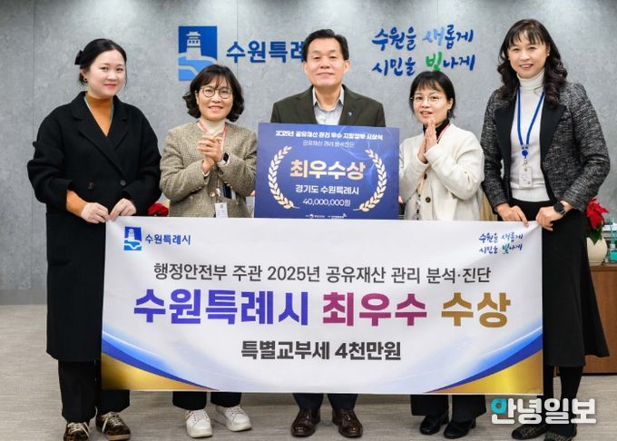 안녕일보 배윤 기자 | 수원특례시가 행정안전부 주관 ‘2025년 공유재산 관리 분석·진단 평가’에서 최우수 지자체로 선정돼 특별교부세 4000만 원을 확보했다. 시상식은 22일 정부서울청사에서 열렸다.