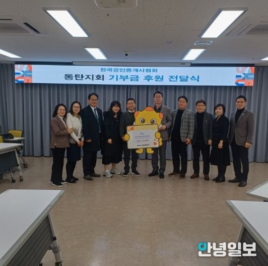 안녕일보 배윤 기자 | 화성특례시는 한국공인중개사협회 화성동탄지회(초록·중앙·리베라·호수·청계회 포함)에서 24일 화성시 동탄출장소를 방문해 어려운 이웃을 돕기 위한 기부금 619만 원을 기탁했다고 밝혔다.