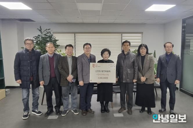 안녕일보 배윤 기자 | 지역사회 발전을 위해 모인 신천동 발전위원회에서 지난 12월 23일 신천동 취약계층 지원을 위한 후원금 300만 원을 전달했다.