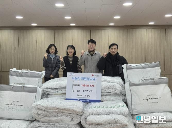 안녕일보 배윤 기자 | ㈜흥진캐노피는 지난 24일 관내 어려운 이웃이 따뜻한 겨울을 보낼 수 있도록 겨울 이불 30채를 평동행정복지센터에 전달했다.