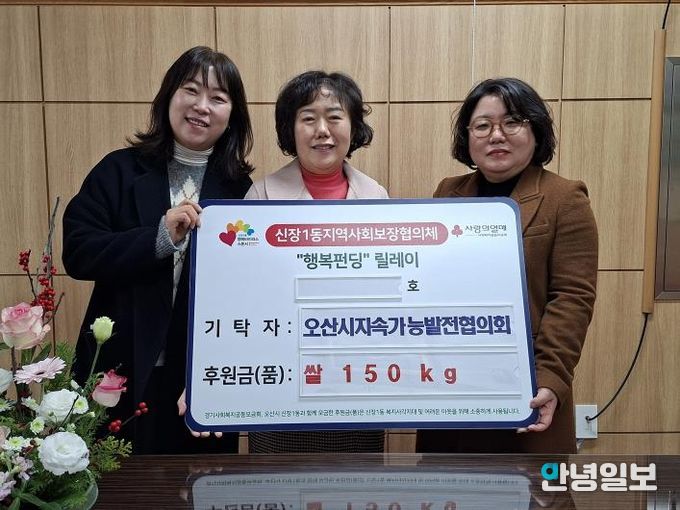 안녕일보 배윤 기자 | 오산시 신장1동 행정복지센터는 지난 24일 오산시 지속가능발전협의회로부터 관내 취약계층 가구 지원을 위한 쌀 150kg를 기탁받았다고 밝혔다.