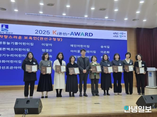 안녕일보 배윤 기자 | 권선구는 지난 29일, 어려운 여건 속에서도 헌신적으로 봉사해 온 어린이집보육교직원의 사기 진작을 위해 ‘자랑스러운 보육인’ 10명을 선정하여 권선구청장 표창을 수여했다.
