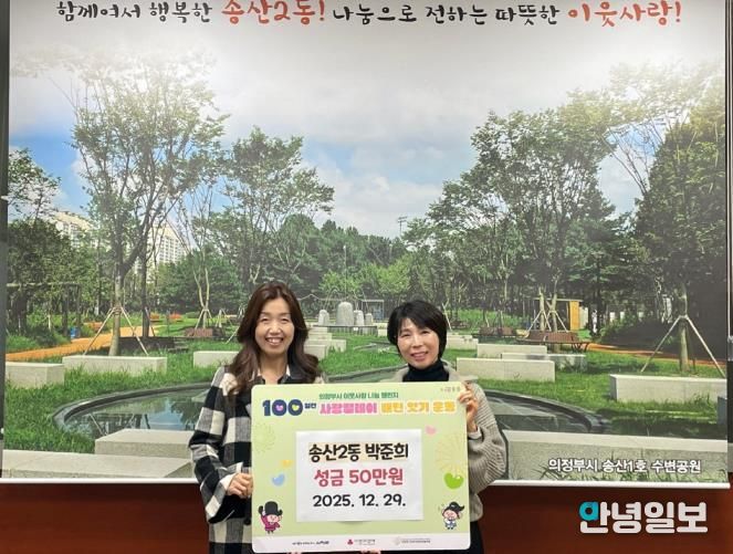 안녕일보 배윤 기자 | 의정부시 송산2동주민센터는 12월 29일 송산2동 지역사회보장협의체 박준희 부위원장이 어려운 이웃을 돕기 위해 성금 50만 원을 기탁했다고 밝혔다.